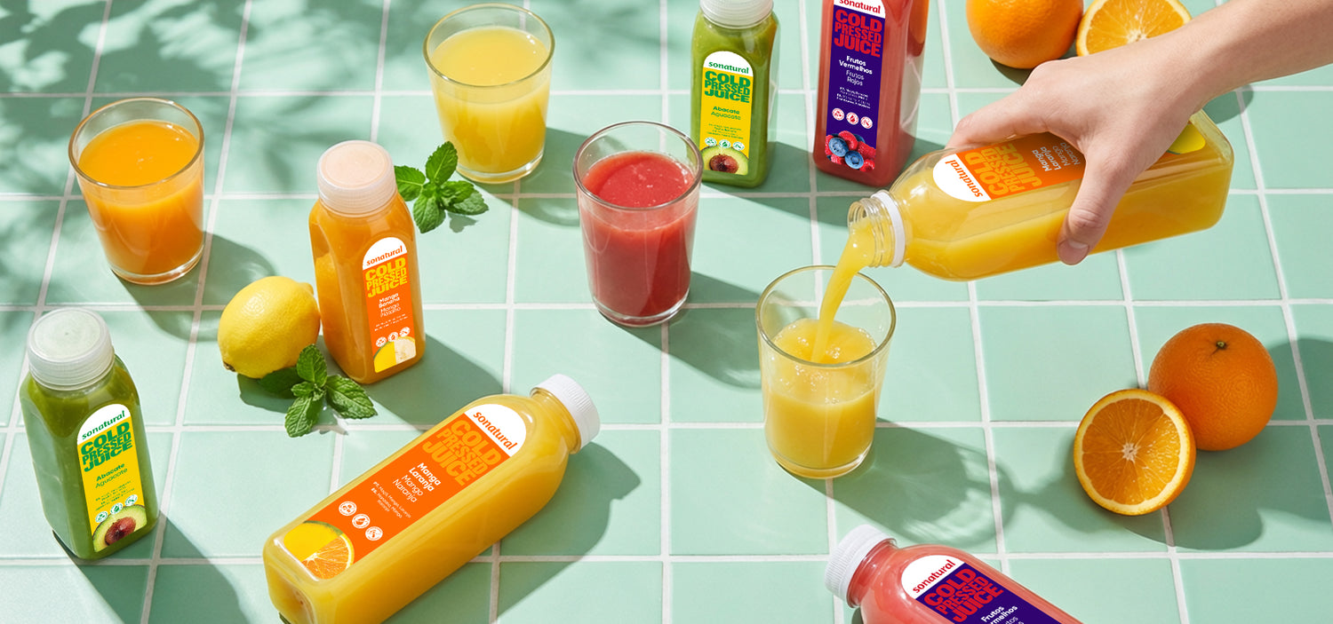 Sem açúcares e conservantes, apenas com fruta fresca espremida, os nossos sumos cold pressed são uma explosão de sabor e saúde!